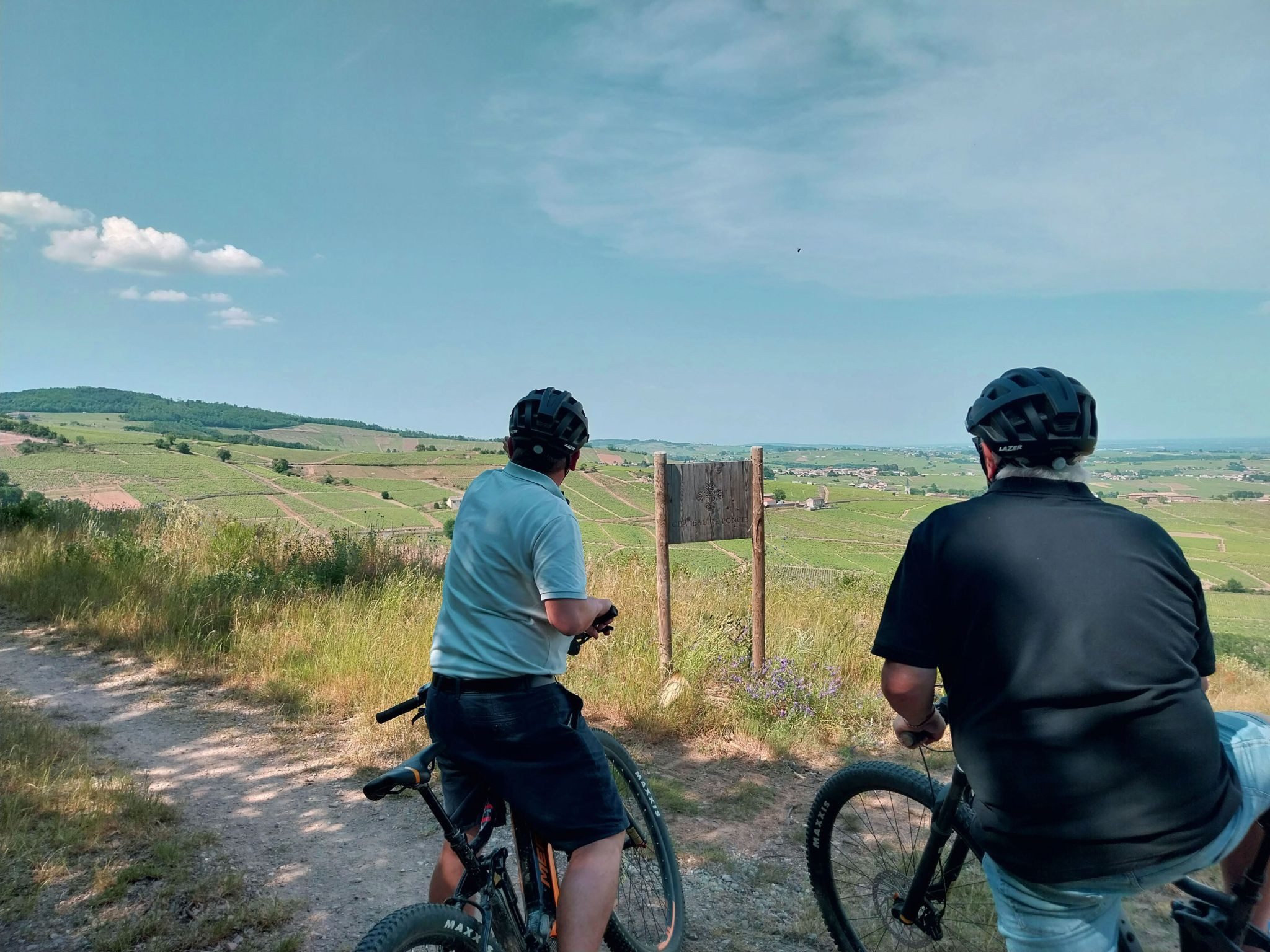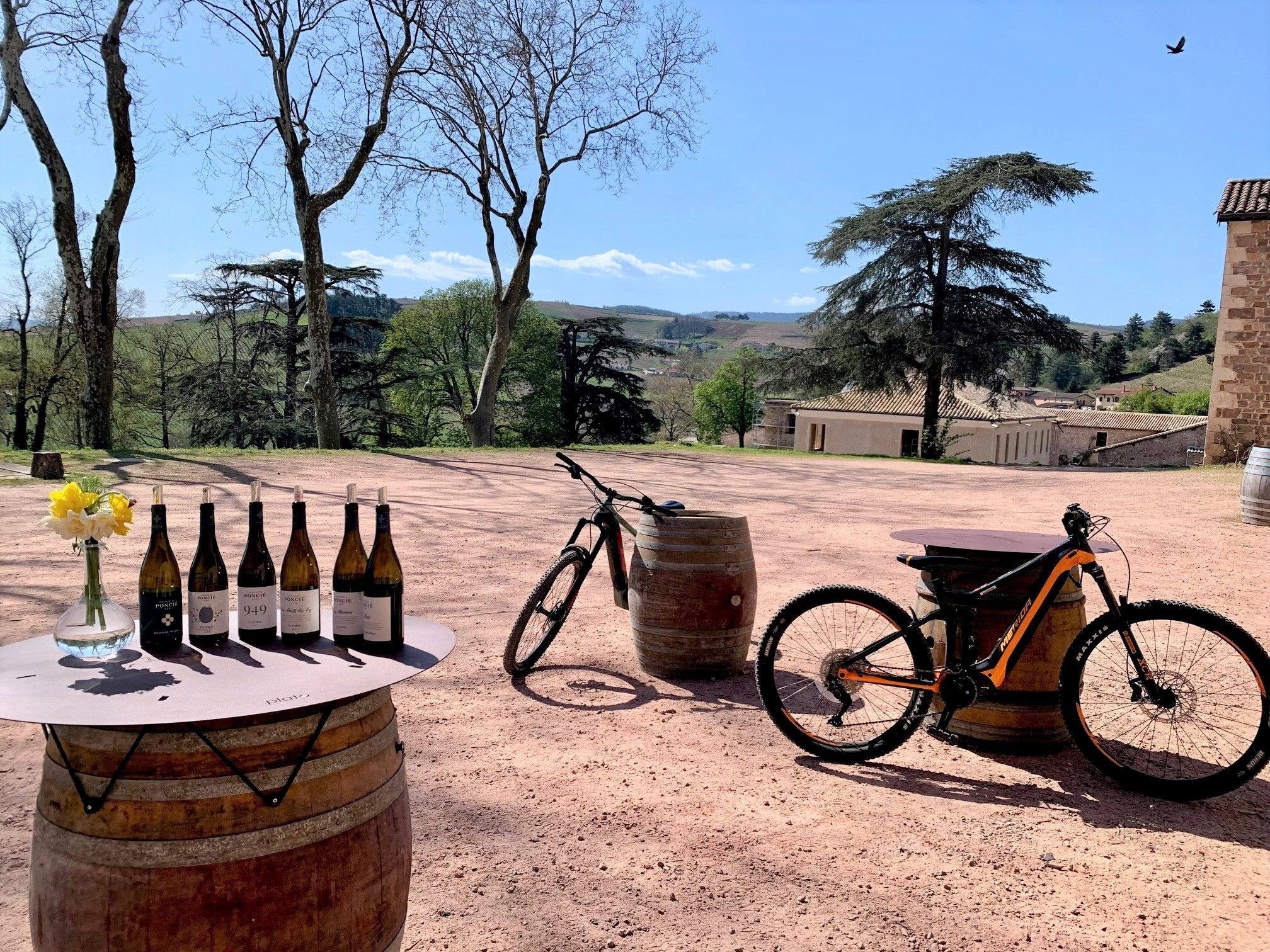 Accompanied by a guide, you will cycle through our hilly vineyards and enjoy a pleasant ride along the slopes of Château de Poncié. Admire the chapel of the Madone de Fleurie, go deep into the granite quarry and cross our various parcels. The various stops will allow you to better understand the diversity of our landscapes and the work of the soil carried out in agroforestry.