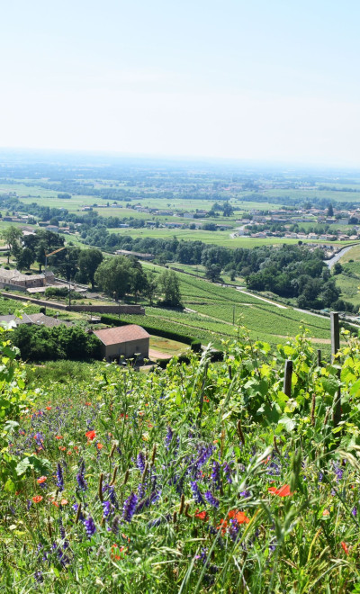 The tour will take you through our various vineyard parcels on rolling hills such as Les Hauts du Py, Les Moriers and Montgenas. From the top, the panoramic view of Fleurie, Mâcon, Chénas and their surroundings is breathtaking. The walk ends in our vat house where you will learn all about our grape varieties, from "Gamay noir à jus blanc" to "Chardonnay", as well as about our winemaking process. A tasting of six wines will allow you to fully immerse yourself into this unique experience.